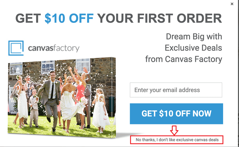 There’s a fair share of “No, I want to remain ignorant,” or “I don’t need your product right now” responses, and sometimes a customer has to click on them because there is no other way to close the pop-up if they are not interested in the offer.
