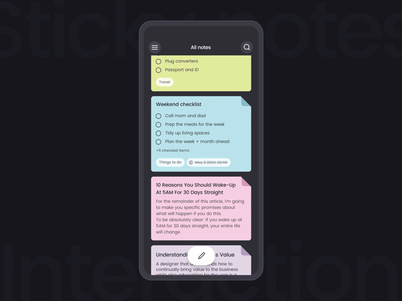 Offset and delay creates hierarchy between UI elements that are moving at the same time and communicates that they are related, yet distinct. Instead of complete synchronization, the timing, speed, and spacing of elements are staggered, resulting in a subtle “one after another” effect.