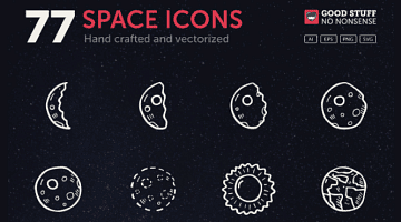 Looking for some awesome and free space icons? Of course you are — grab 77 hand drawn icons here.