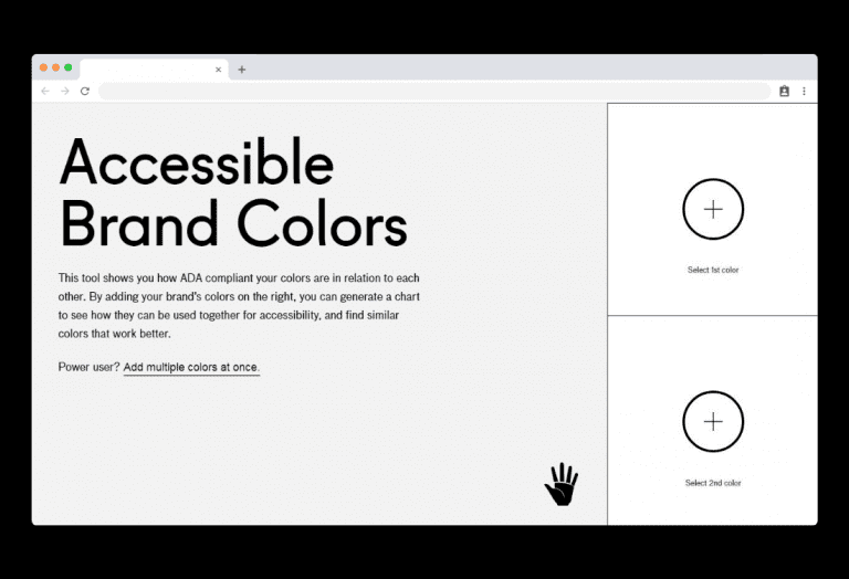 This tool shows you how ADA compliant your colors are in relation to each other. By adding your brand’s colors on the right, you can generate a chart to see how they can be used together for accessibility, and find similar colors that work better.