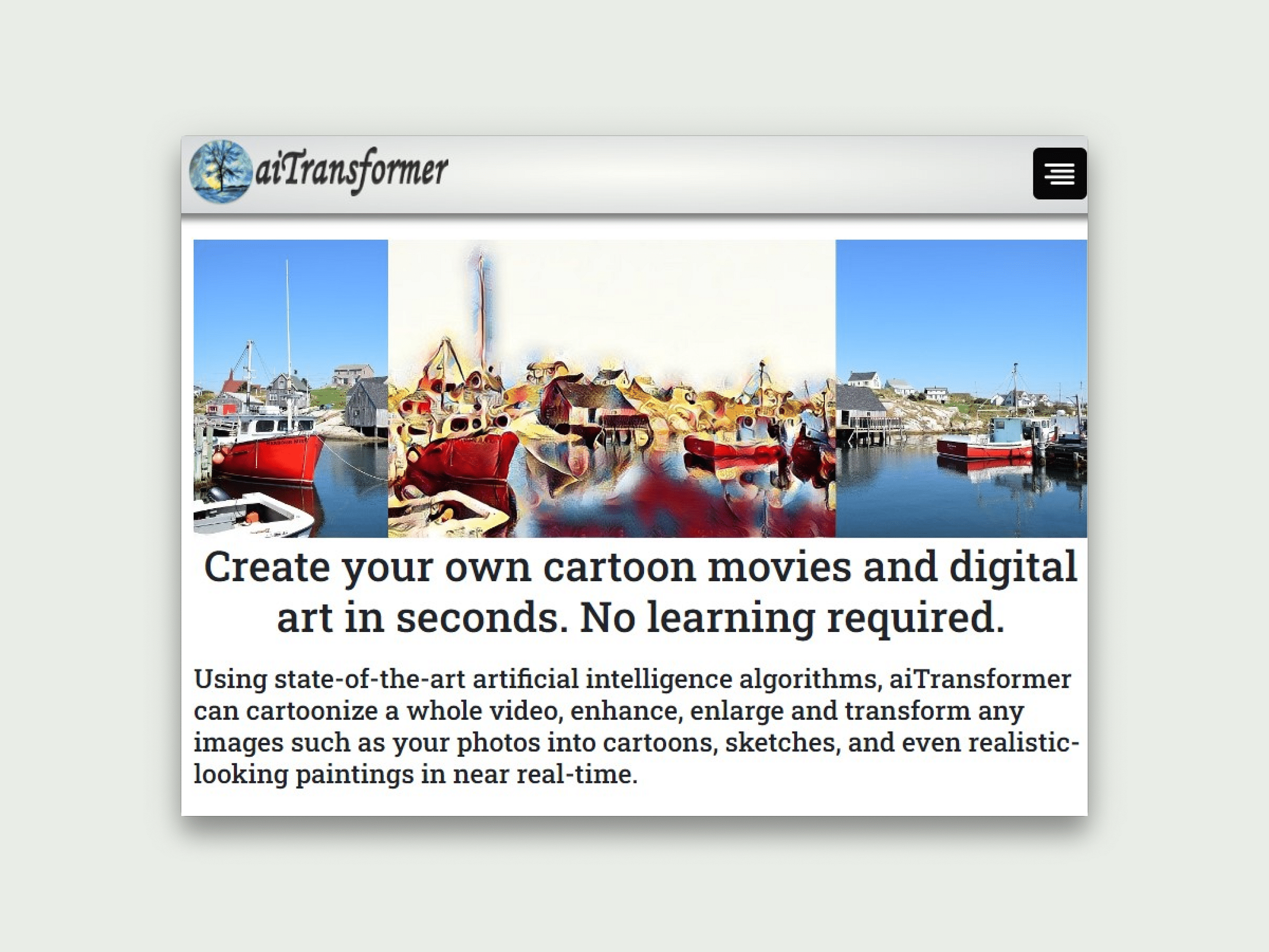 Turn your pictures into custom art or cartoons with AI Image Transformer. An AI-powered art generator that lets you simply upload your images and download the results in just a few seconds. AI Image Transformer includes runs on Oasis blockchain, includes both a styliser and a cartooniser tool, and it's free.