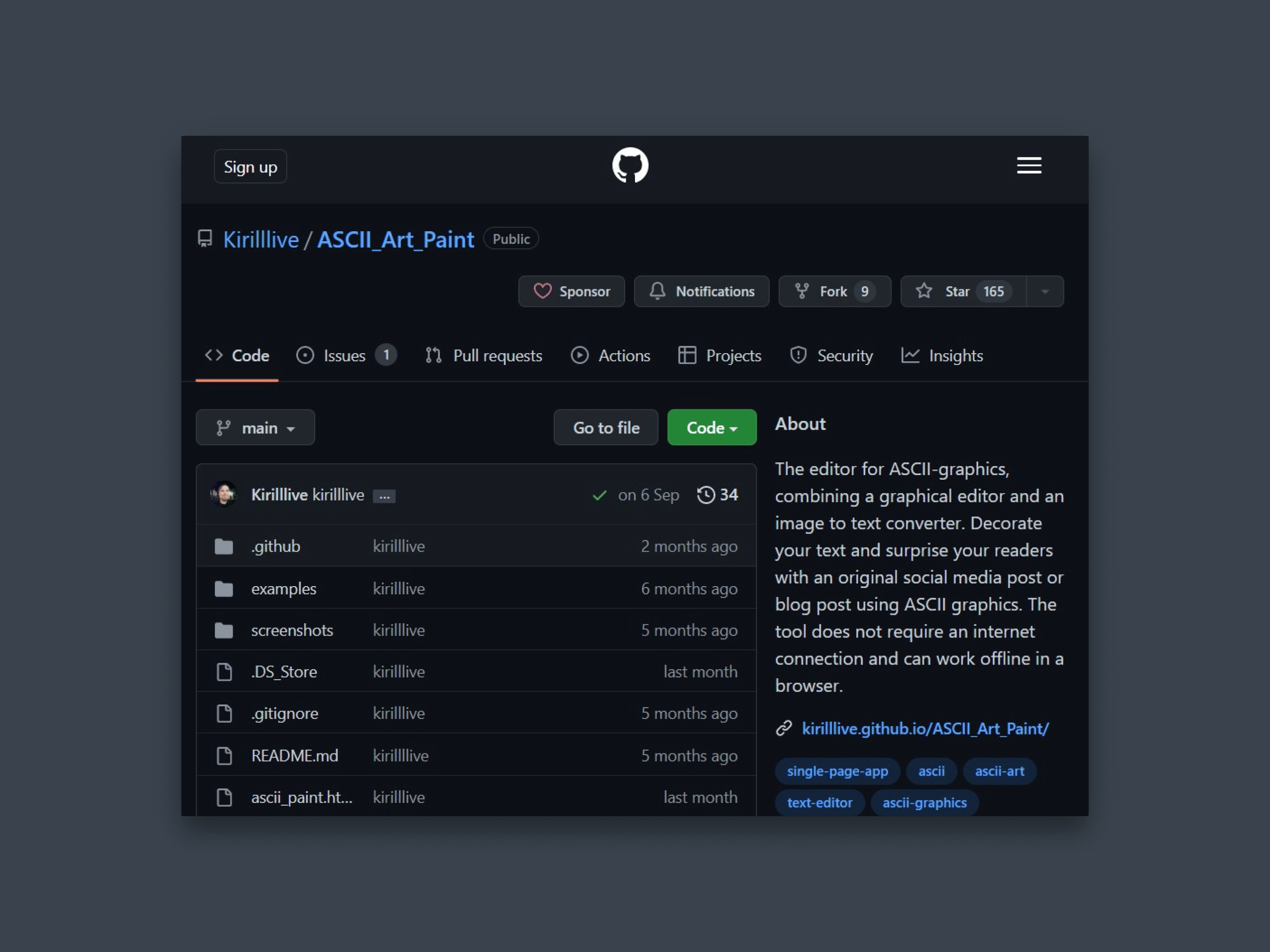 ASCII Art Paint is a free, open source text art editor. This web-based app helps you create and edit text characters and hieroglyphs, such as ASCII graphics, Shift_JIS art, Kaomoji and others, and it even works offline.