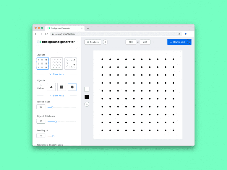 A simple and customizable background image generator. Background Generator by Yuri Molkin is an enhanced pattern generator, built so you can bring custom elements into your projects and social pages. You can play around with toggles and sliders to adjust your parameters and create your own patterns. On the other hand, if you prefer, you can also start with an existing pattern and take it from there. A whole world to explore!