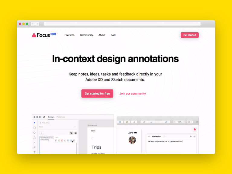 Focus gives you the possibility to add in-context annotations to your designs. This way, your notes and feedback are right where they belong.