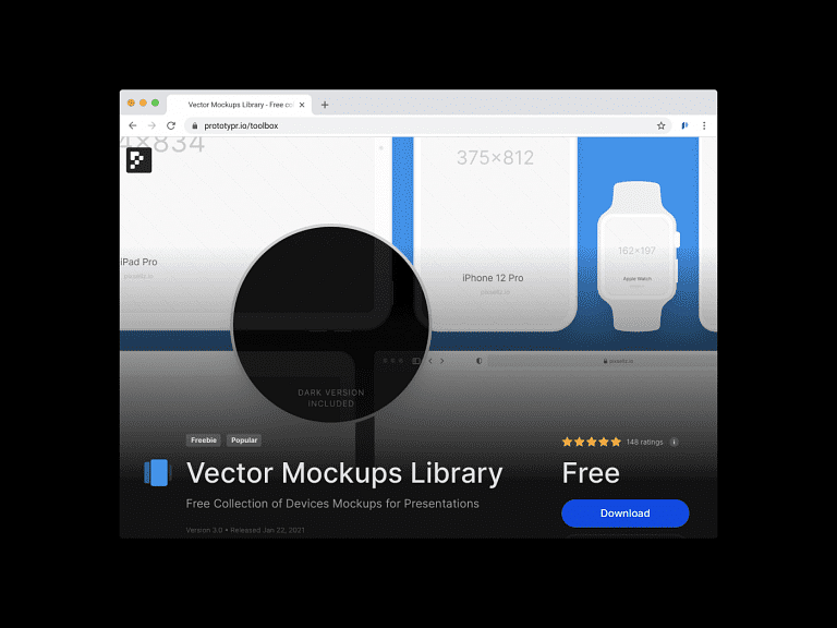 A large collection of vector mockups for your product presentations. This library by Pixsellz includes mockups for the most popular devices, and it’s 100% free. Try it out!